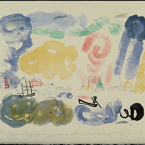Studied at the Repin Institute of Arts (1964–1970) in the Faculty of Graphic Art under M. A. Taranov. Exhibited since 1971. Member of the USSR Union of Artists (1975), the Tsekh (Guild) group (1991), the Verband Bildender Künstler und Künstlerinnen Württemberg (1998). Worked as an artist at the Experimental Printing Studio of the Graphic Art Workshops of the Leningrad Branch of the RSFSR Art Fund (1970–1996); the Detskaia literatura (Children’s Literature) publishing house (1976–1991); Open Studio in Toronto, Canada (1986); the Bath Artist Printmakers society and Oxford Printmakers’ Co-operative, both UK (1991); the N. A. Tyrsa Experimental Workshop-Studio association, St Petersburg, which he chaired (1994–1998); Jyväskylä Centre for Printmaking, Finland (1995–2013); the lithographic studio of the Academy of Arts in Stuttgart, Germany (1998-2016). Lived and worked in St Petersburg (1945–1998) before emigrating from Russia, based in Stuttgart, Germany, since 1998. Main collections: ROSIZO (Moscow), National Library of Russia, Peterhof State Museum- Reserve, State Literary and Memorial Museum of Anna Akhmatova at the Fountain House, State Museum of Urban Sculpture, State Russian Museum (all St Petersburg), State art museums in Chita, Irbit, Kozmodemyansk, Krasnokamsk, Sochi, Vologda, Yaroslavl; Jyväskylä Art Museum (Finland), Art Museum of Georgia (Tbilisi, Georgia), German National Library (Frankfurt am Main, Germany), Staatsgalerie Stuttgart (Germany), Van Abbemuseum (Eindhoven, Netherlands), British Library (London, UK).