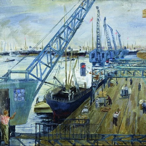 Studied at N. N. Storozhevsky’s Art School in Kharkov (1920– 1923); Kharkov Technical College of National Economy (1921–1923); VKhUTEIN, Pg–L (1924–1930) under K. S. Petrov-Vodkin, A. I. Savinov and A. Ye. Karev. Exhibited from 1931. Member of the October association (1929–1930), the Association of Artists of the Revolution (1930–1932), co-founder and member of the Leningrad Branch of the Union of Soviet Artists (1932). Executive secretary of the Leningrad Branch of the Union of Soviet Artists board (1938–1945). Worked as an artist-designer of public spaces in Leningrad (1930s), chief artist of the Volodarsky District, Leningrad (1934–1938), deputy chairman and chairman of the City Fine Arts Committee (1934–1937), member of the VSERABIS (All-Russian Trade Union of Art Workers) Regional Committee (1937–1938). Taught at Leningrad Institute of Railway Engineers (1938–1940); Leningrad Higher College of Art and Design (1948–1983), Head of the Department of Painting (1957–1981), Professor (1967). Main collections: ROSIZO, State Central Museum of the Modern History of Russia (both Moscow), State Literary and Memorial Museum of Anna Akhmatova at the Fountain House, State Memorial Museum of the Defence and Siege of Leningrad, State Museum of the History of St Petersburg, State Russian Museum (all St Petersburg), State art museums in Arkhangelsk, Cheboksary, Krasnoyarsk and Yaroslavl.