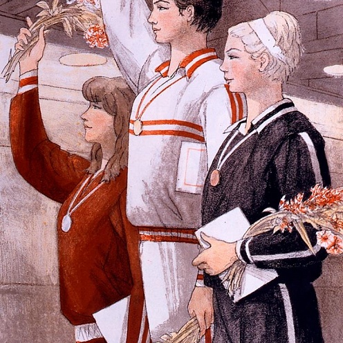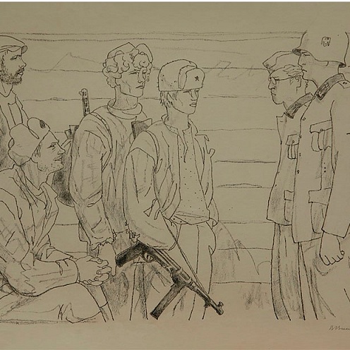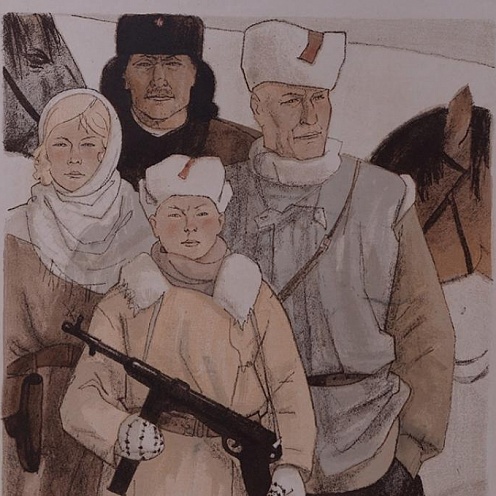Studied at Terijoki Nonclassical Secondary School (1918–1922); I. Ye. Repin’s private studio (1919–1923); A. I. Savinov’s private studio (1925–1927); VKhUTEIN, Pg–L (1925–1927) under K. S. Petrov- Vodkin, A. I. Savinov and V. V. Lebedev; the Higher Courses of Art History (1927–1928) in the Department of Cinematography under L. Z. Trauberg and G. M. Kozintsev. Exhibited from 1935. Member of the Gruppa zhivopisno-plasticheskogo realizma (Group of Painterly Plasticity Realism) association (1927–1932), the Leningrad Branch of the Union of Soviet Artists (1934). Worked as an artist at the Detgiz, Goslitizdat, Lenizdat, Molodaia gvardiia, Khudozhestvennaia literature (Fiction) and other publishing houses (1925–1960s); the Lenfilm studio (1930s), the Experimental Printing Studio of the Leningrad Branch of the Union of Soviet Artists (from 1939). Taught at Ufa Art College (1932–1933); Leningrad Institute of Urban Construction Engineers (1934–1940); the House of Architects art studio (1934– 1940); the Repin Institute of Arts (1944–1946); Leningrad House of Cinema art studio (1946–1952). Main collections: A. S. Pushkin State Museum of Fine Arts, ROSIZO, State Central Theatre Museum, State Library of Russia, State Tretyakov Gallery (all Moscow), State Memorial Museum of A. V. Suvorov, State Memorial Museum of the Defence and Siege of Leningrad, State Museum of the History of St Petersburg, State Museum of the Political History of Russia, State Russian Museum (all St Petersburg), Breaking of the Siege of Leningrad Museum- Reserve (Leningrad Region), State art museums in Bryansk, Kazan, Kirov, Kurgan, Perm, Yuzhno- Sakhalinsk and others.