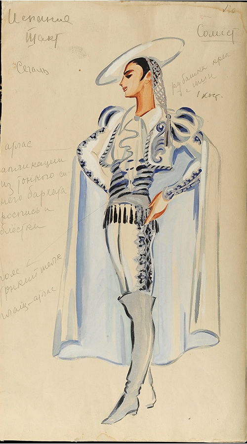Spanish Costume Design for the Ballet Dancer Segal in the S. Prokofiev Ballet "Cinderella", 3rd Act. State Academic Opera and Ballet Theatre, Kiev, Ukrainian SSR