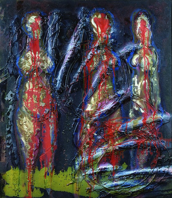 Mixed media on masonite