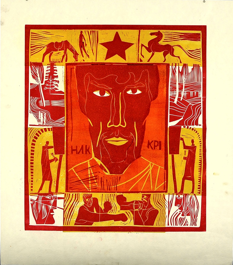 Colour linocut on paper
